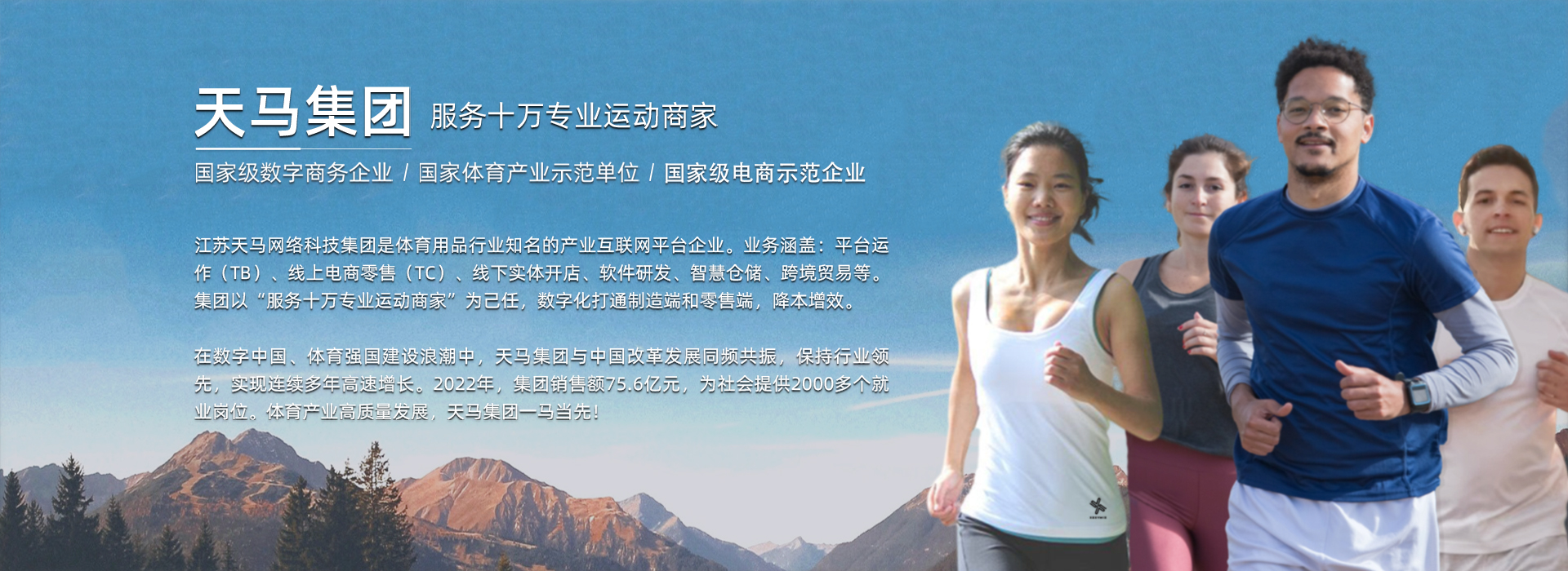 天馬集團(tuán)2003年在淘寶開(kāi)設(shè)幸運(yùn)葉子金冠運(yùn)動(dòng)名品網(wǎng),是淘寶首批運(yùn)動(dòng)商家;2012年開(kāi)設(shè)天貓幸運(yùn)葉子官方旗艦店2013年開(kāi)設(shè)京東幸運(yùn)葉子官方旗艦店,2015年簽約歐洲大型運(yùn)動(dòng)賣場(chǎng)——INTERSPORT,2016年在淘寶開(kāi)設(shè)INTERSPORT旗艦店,2017年開(kāi)設(shè)蘇寧平臺(tái)幸運(yùn)葉子官方旗艦店,2018年開(kāi)設(shè)京東INTERSPORT體育專營(yíng)店......